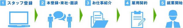 建設・建築業界への転職なら建設求ネット > 当社の強み > 登録から就業までの流れ